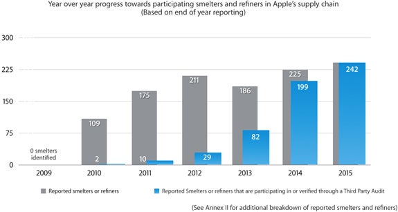 Apple has 242 smelters or refiners in its supply chain, and every last one is participating in a third-party audit program to ensure their 3TG is conflict-free